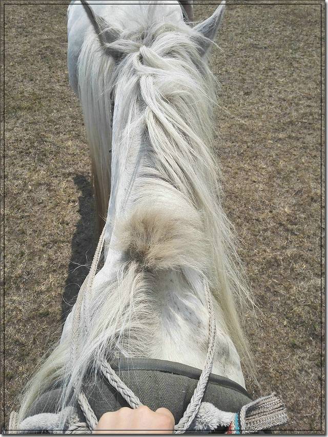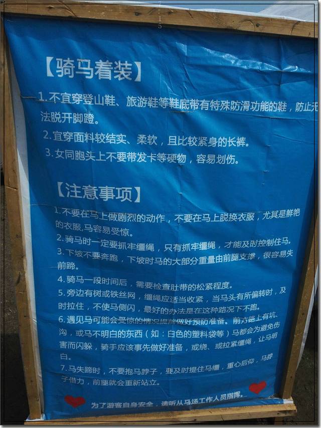 听马场的人简单地讲了下骑马的要领,翻身上马出发,小哥说我动作挺利索的,一下就上去了,心里窃喜,之后就慢慢在马场走起来。这次骑马,每个人一匹,自己控制,刚上去的我真的挺害怕的,而我的白马还老是动不动就爱小跑,我吓得呀,后来小哥实在看不下去,说帮我牵着缰绳,不过没一会就掉到了地上,马儿还经常不小心踩在绳子上,我更害怕了,最后勒马停下来,拼尽所有的勇气俯身向前拉起缰绳,拿上来的时候那个兴奋呀。