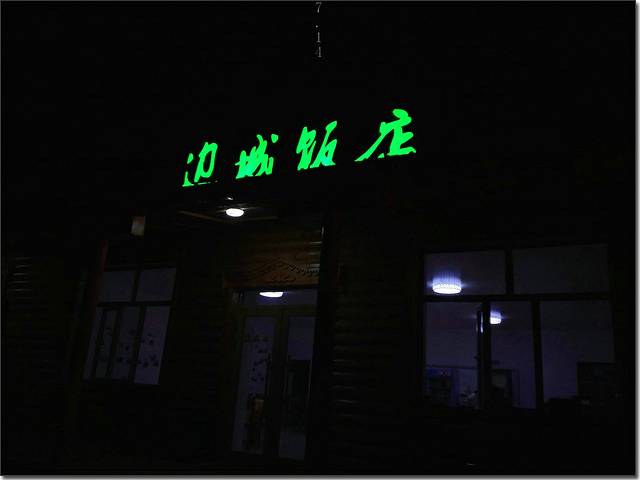 暮色即将到来的时候,终于到了黑山头,今天的晚餐在边城饭店吃,又是东北菜,快吃完的时候停电了,外面漆黑一片,真是啥啥都看不见,点上蜡烛,有点烛光晚餐的味道,只可惜,对面的人不是心爱之人,不然多浪漫啊,O(∩_∩)O哈哈~