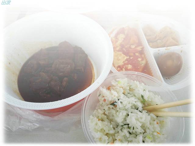 吃饭的地方又好多人排队,排了好久,总算有饭吃了,之前看到餐券上是夫子庙小吃,还以为是鸭血粉丝等小吃类,没想到是一个盒饭,还不错,估计是饿狠了,不过排骨太甜,作为一个不是很地道的湘妹子,对一切甜的菜都不怎么感冒。