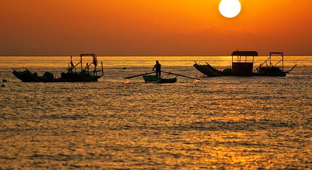 在关山,睁开眼睛可以看到金光闪闪的海面就浮现在面前。在关山平台上,金光余晖尽收眼里,这种感动不是三言两语可以说明。