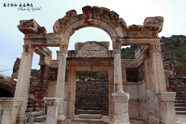 】哈德良神殿。哈德良皇帝是2世纪时罗马帝国的皇帝,这座神殿便是为他而造。神殿上用雕刻的形式展现了艾菲斯起源的传说,众神、动物、皇帝的形象都一一展现,是库瑞特大街上修复完成的最漂亮的建筑。