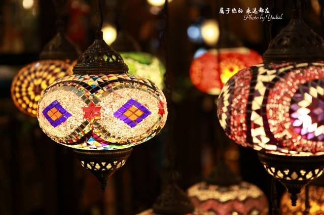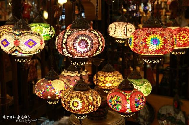 偌大的放射状的集市,稍不注意就感觉走进了迷宫。整个大巴扎以首饰、陶瓷、香料、地毯、灯饰居多,这种有点类似于水晶片制作而成的特色灯具,我特别想买一个,但考虑到运输问题最终还是放弃了。