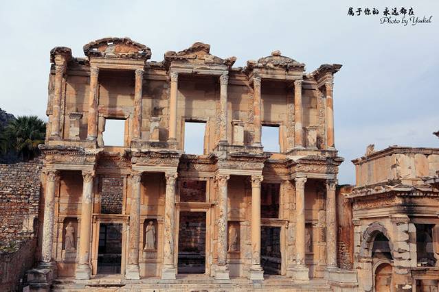 图书馆在一片废墟之中显得尤其的壮观与特别。如今,整个以弗所古城几乎全部成为一片废墟,昔日的繁荣已不复存在,但可遥想曾经的辉煌。