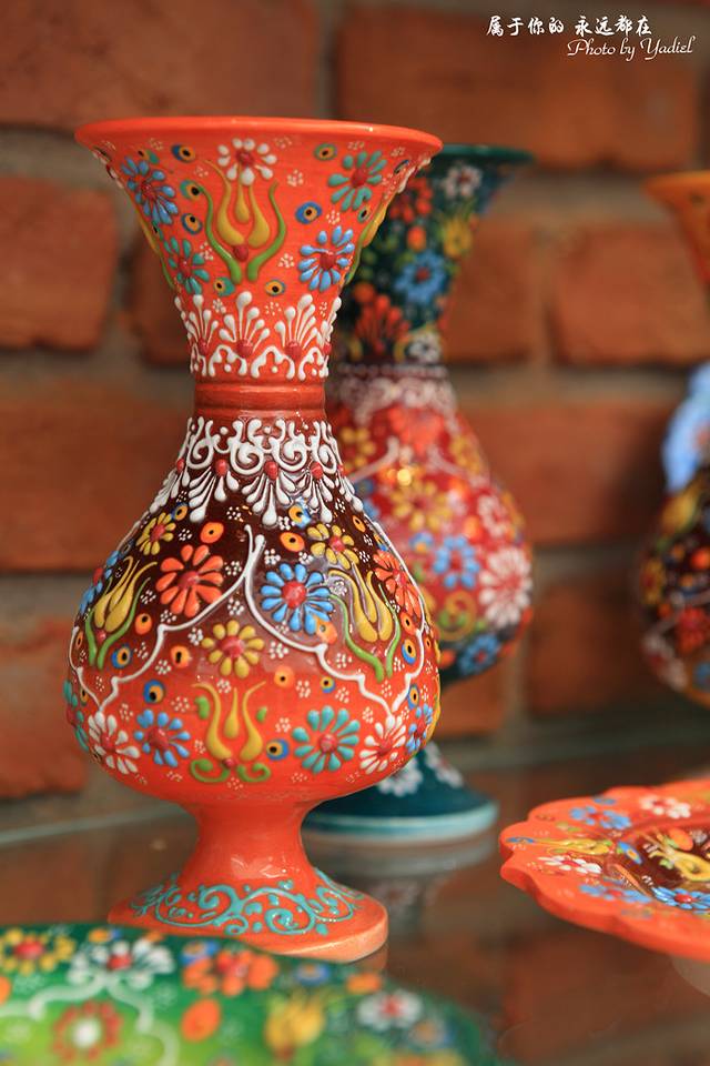 中国人去土耳其买瓷器?是的,您没有看错!土耳其的瓷器(彩陶)自16世纪以来就非常的著名,而且做工精致。曾经的Iznik窑炉就像中国的景德镇,土耳其最美的瓷器艺术品都是出自那里。而Iznik的瓷器现在已经被划为文物,且禁止出口其它国家。但Kütahya的陶匠现在仍然是在土耳其首屈一指的工艺家,仍然保留着传统的工艺。制作的盘、碗、杯、瓦等工艺品销售到土耳其的全国各地,根据质量差别价格从几美金到几百美金不等。