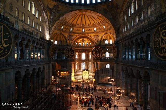 提到“圣索菲亚大教堂”,可能很多人会想起哈尔滨中央大街附近的那个洋葱顶东正教堂,却不知位于伊斯坦布尔的那座“中古世界七大奇迹”之一的圣索菲亚大教堂。它是拜占庭式建筑最佳的现存范例,曾是世界上最大的教堂,也因土耳其错综复杂的历史文化,使它成为了一座既供过耶稣又供过安拉、既是教堂也是清真寺的“混血教堂”。