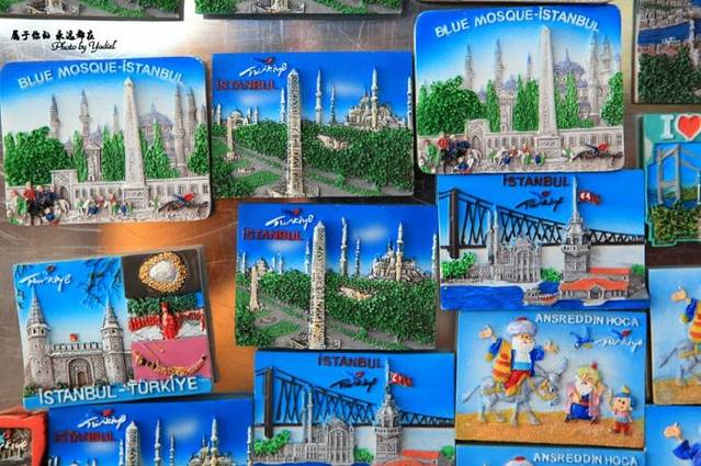 冰箱贴并不算是土耳其的特色商品,但音质有土耳其那种特有的蓝色的冰箱贴,总有一种让人爱不释手的感觉。或是蓝色清真寺,或是埃及方尖碑,或是欧亚大陆桥,或是托普卡帕宫,或是旋转托钵僧,这些具有典型的土耳其因素的冰箱贴,携带方便、价格便宜,作为旅行纪念品是个不错的选择。
