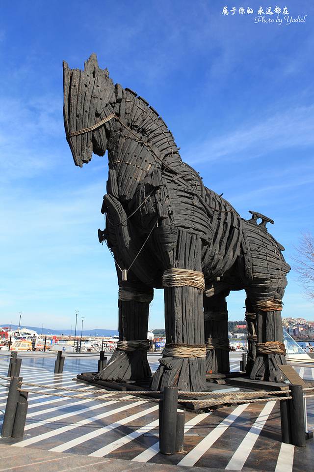 特洛伊,曾是古希腊殖民城市,公元前16世纪前后由古希腊人所建。位于土耳其恰纳卡莱南部,北临达达尼尔海峡,西抵小亚细亚半岛,坐落在平缓的城堡山脚下。虽然特洛伊古城早已废弃,但这里依旧山峦青翠,流水潺潺,红瓦白墙的农舍点缀其间,是土耳其爱琴海地区典型的农村风光。