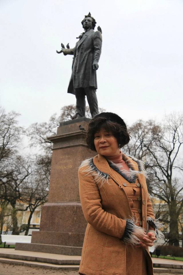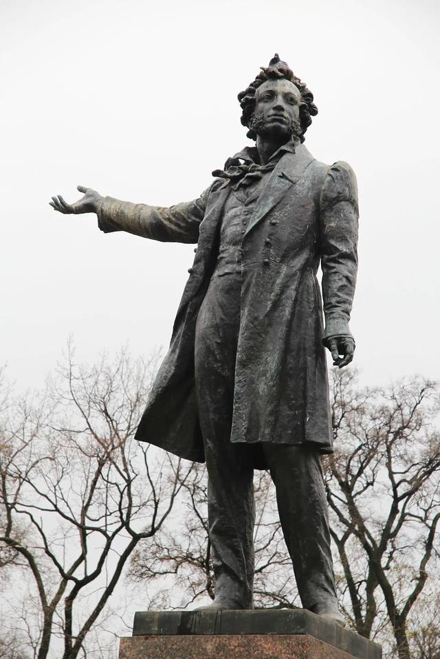 我端庄立在普希金雕像下面
