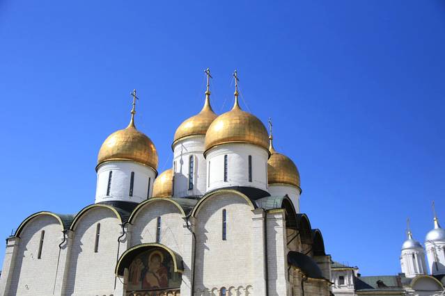 圣母升天大教堂位于克里姆林宫中心,俄罗斯的国教大教堂,历代沙皇都在这里举行加冕礼,是1479年由意大利著名的设计师。