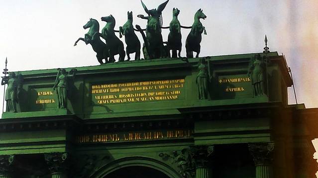 圣彼得堡有很多凯旋门,每座凯旋门都刻印着当年凯旋归来盛况.