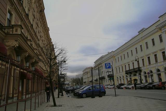 涅瓦大街能欣赏到各种教堂、名人故居以及历史遗迹。俄导说:沙皇规定所有建筑物不能高于冬宫,这里的楼群按高48米,长宽240米而建,俄罗斯的建筑物多是方方正正的。