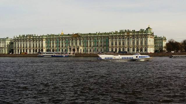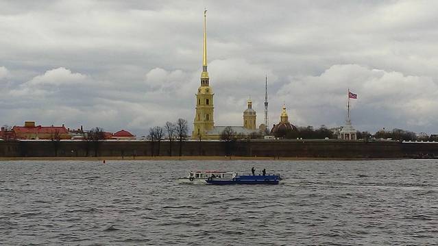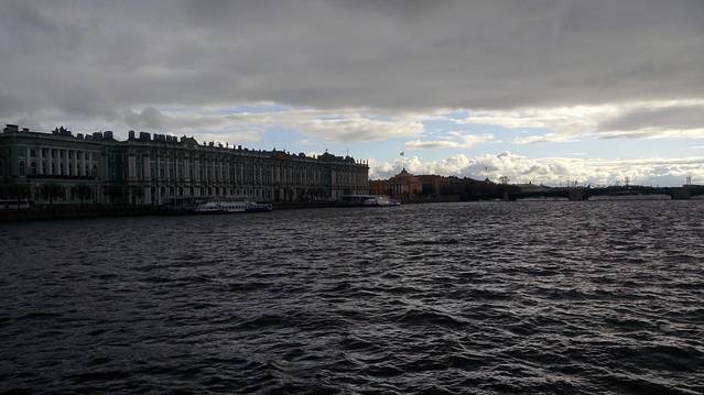 俄导说:圣彼得堡一年只有80天是晴天,其余都是雪、雨天气。我们来这3天基本是晴天,只有今天遇到暴雨,刚好在船上,使我们仿佛看到《十月革命》暴风雨和占领《冬宫》的景象哦!