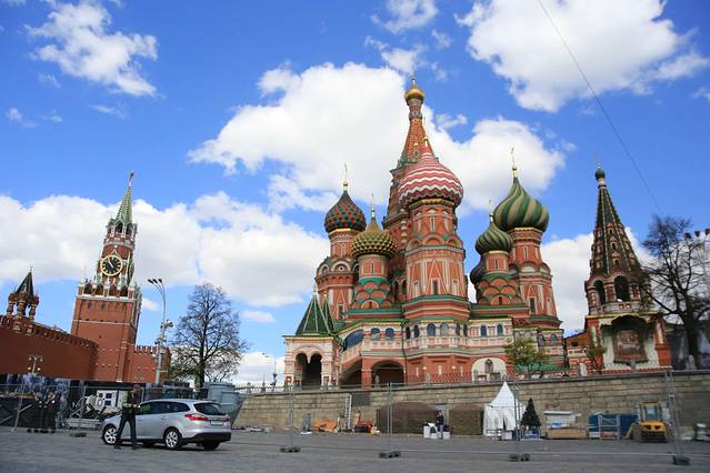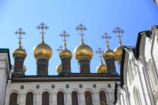 《克里姆林宫》——克里姆林宫的教堂建筑也很有特色。广场四周围绕着四座教堂:圣母升天教堂、天使报喜教堂及圣弥额尔教堂、十二使徒教堂。