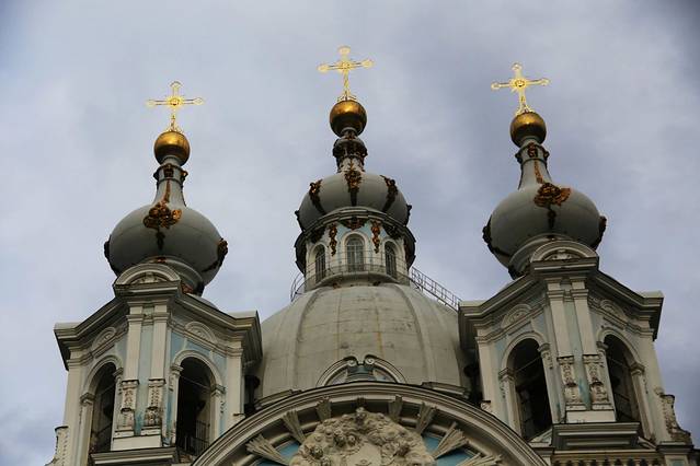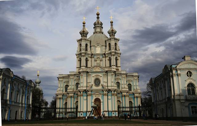 《斯莫尔尼宫》——是一座外观典雅的三层建筑,它建于1806—1808年,整体色彩和叶卡捷琳娜宫。的色彩相同