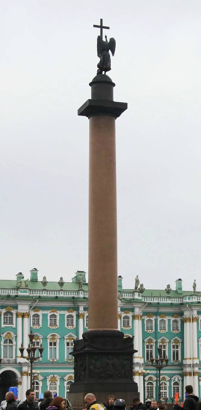 冬宫广场,中心是亚历山大柱,整块花岗岩,用来纪念“拿破仑战争”。