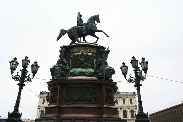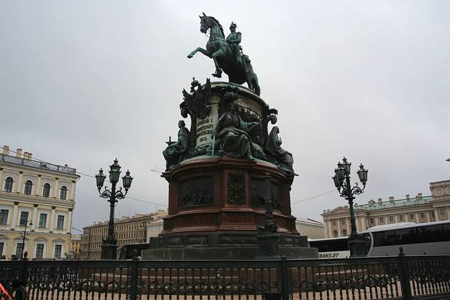 尼古拉一世骑马青铜雕像。在教堂的正门外广场上。