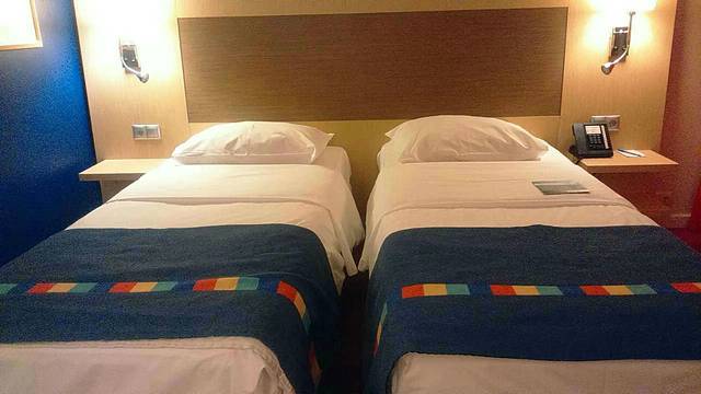 我们住的是四星级酒店,这酒店基本是俄罗斯风格,饮用水是冰冻的,你们记得带可烧水的壶;圆头两脚圆插头;床是窄小的,正是俄罗斯10怪中的第7怪:“人高马大床得窄”。俄导说:从彼得大帝起,床一律是窄小的,是为了提醒自己不要高枕无忧。