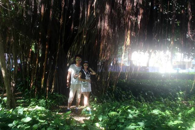 哇···男女主角上场啦··点个赞吧·这是在厦大一大片草坪上,有很多又大有高的树