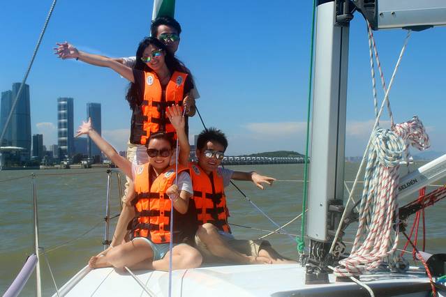 观音山就是帆船出海啦··开始的时候很害怕,因为船是80°倾斜着,不死死抓住就会被掉下海·当然是在安全范围下船长才这么玩,总不能拿生命开玩笑对吧。值得推荐,出发之前 介绍人说有八景可观赏,我表示全程没看见,不过在船上可以真的看见台湾的环岛路哦·不能离得太近,是有人 把守的,只能远观不可亵玩焉。