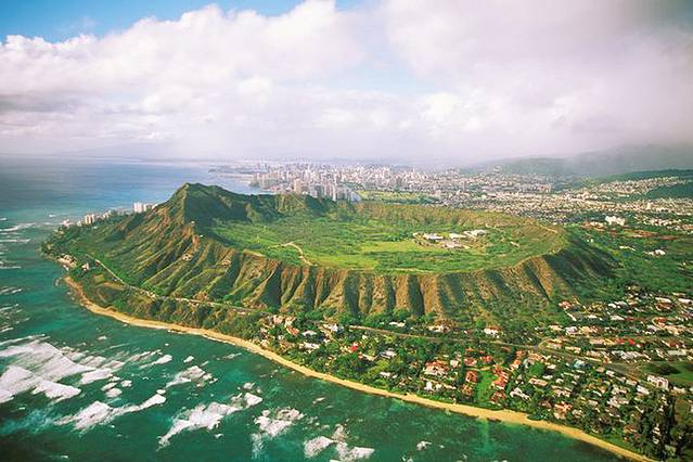 钻石头山是檀香山的天然的标志之一,是一座死火山,曾经作为夏威夷地区的军事基地,依旧保留着军事设施的遗址,如今也是夏威夷最值得徒步的目的地之一。这条略有挑战性的步道有两条台阶,总共有175级,还有黑暗的地下隧道。登上山顶可以纵观檀香山全市的风貌,还可以在傍晚观赏海上的落日美景,把徒步的疲惫消除殆尽。