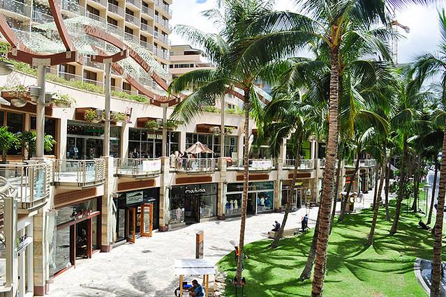 火奴鲁鲁的主干道,两边分布着各种商铺和火奴鲁鲁最大的购物商场,皇家购物中心。从各种各样的一线奢侈品、高档餐厅、娱乐奢侈,可谓是吃喝玩乐俱全。