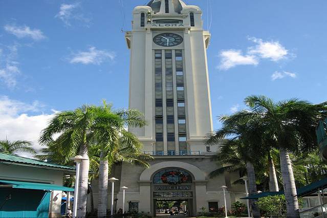 阿罗哈塔坐落在檀香山海港,是1926年之后40年间夏威夷最高的建筑。塔上的时钟是美国最大的时钟之一,如今塔依旧伫立在海边欢迎着八方游客,还能登上塔上第十层的眺望台,欣赏海景与都市融合的美丽景象。第九层还有一个展示檀香山港口历史的小型博物馆。而塔下面的阿罗哈塔市场则云集了各种购物商店和特色的美食。