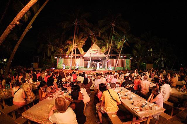 夕阳西下的时候,烤猪野餐刚刚开始。整猪在地下土灶中烤熟之后,配着椰子布丁和芋头糊糊一起上桌。天色暗下来之后,可以在星空下,聆听传统和现代的夏威夷音乐,观看呼啦舞者以优雅曼妙的舞姿。