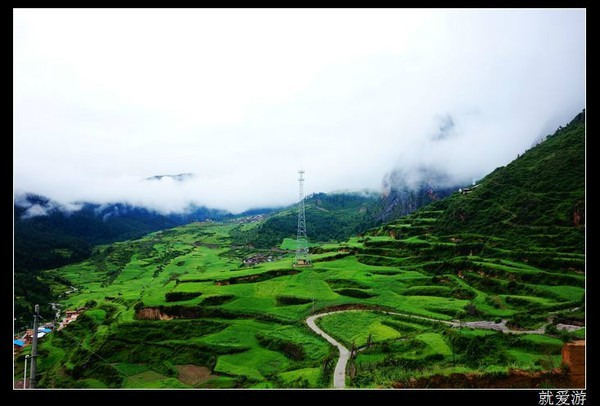 翻越千里岷山时,盘山公路一直到达山顶,感觉真是惊险,时刻紧揪着我们的心。