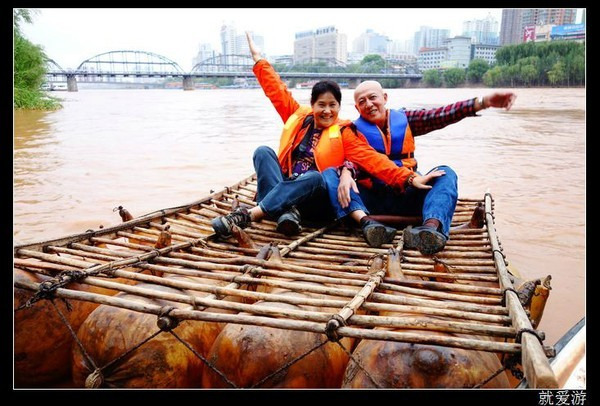我们老夫老妻在黄河母亲雕塑附近水域顺流而下,终点是下游的中山桥附近,漂流的时间约为20分钟左右,50元/人。