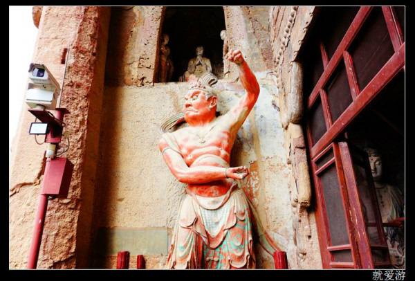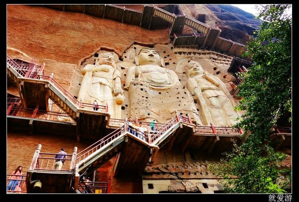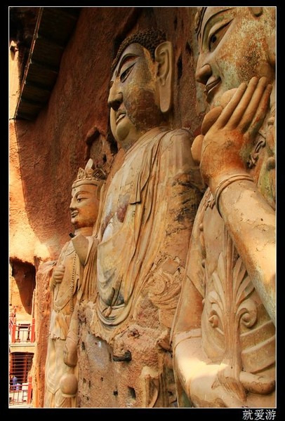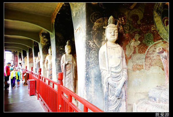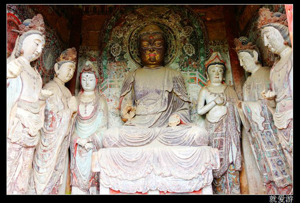 麦积山以精美的塑像闻名于世,敦煌侧重于绚丽的壁画,云岗、龙门著名于壮丽的石刻,被誉为皇家石窟。麦积山这里的以石刻与泥塑混合而成