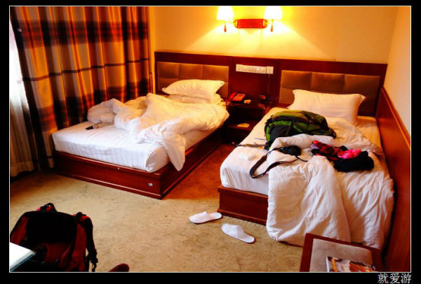 这是在甘肃住的最后一晚,也是整个行程最贵、最差的一个酒店,为了次日进机场方便,特意赶到民航售票处旁边中国东方航空公司的航空大酒店住宿,房价175元/间,这家酒店硬件条件很差,空调很响,门锁还是用钥匙,没有烧水壶,要客人自己去水房里打开水,软件服务就更差,拖鞋只配了三只,卫生间地上有2-3厘米的水,通知服务员后,服务员说,给一个拖把让我们自己拖,态度还极端差。这个酒店大家千万不要去住。