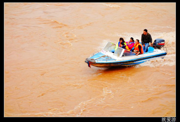 可以选择坐羊皮筏子渡河后,再坐快艇返回,20元/人