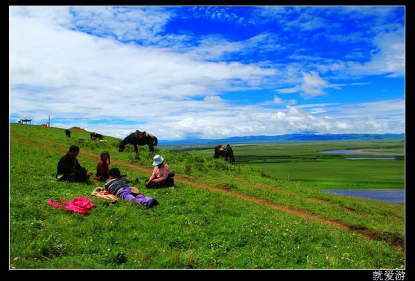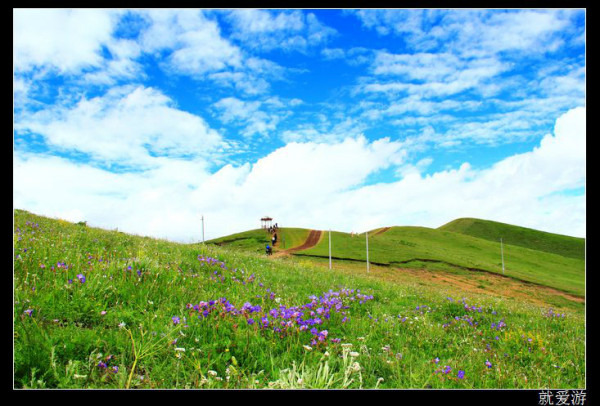 蓝天白云、绿草红花、九曲碧水,登高望远,天地悠悠,令人心神舒畅,久久不忍离去。