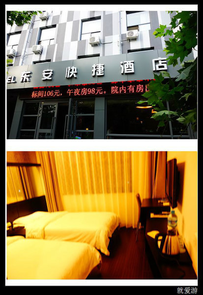 入住火车站对面的东安快捷酒店,这里条件不错,128元/间,推荐,感觉干净卫生,去天水市区出门过马路就是6路公交车总站。