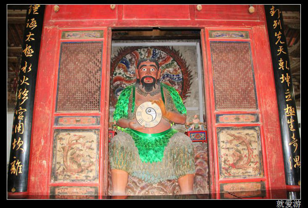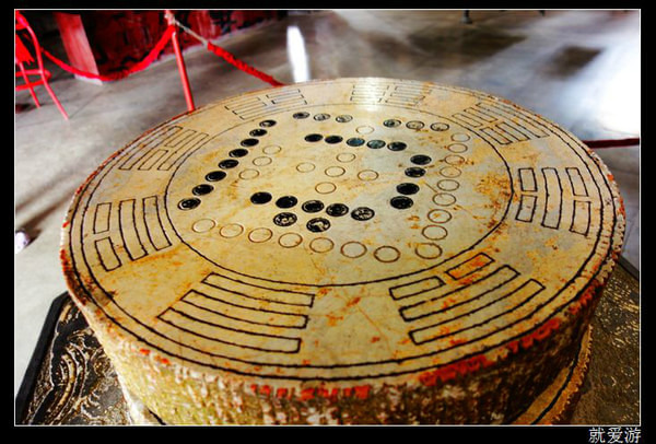 正殿里陈列伏羲创立的中国最早的八卦图,后来周文王在此基础上改进,形成了如今仍在使用的八卦。