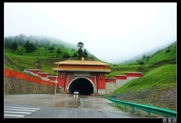日尔郎山隧道,进隧道前还在下雨,哪知一出隧道口竟风和日丽,我们不禁欢呼起来。过了隧道也就进入四川境内了。