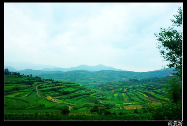 这是快到陇西途中经过的景观,从岷县到陇西一路上都是这种梯田,色彩丰富十分漂亮,不过坐在汽车过道中实在不好拍摄,好无奈啊。