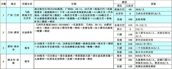 行程费用表(除广州往返兰州的机票及吃饭费用的二个人费用)