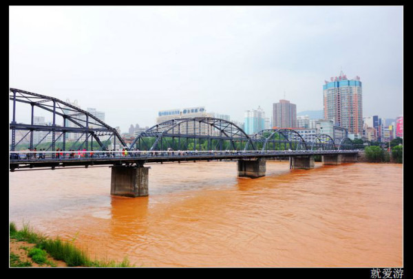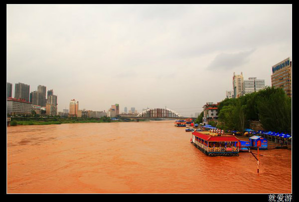 黄河水在兰州段真不愧是黄水,正赶上汛期,河面宽阔,黄水滔滔,很有气势。