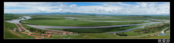 滔滔黄河水从青海、甘肃流到四川唐克,然后又折向西北,再流回甘肃、青海。绕了个180度的大弯曲,唐克黄河草原正处在这个大弯曲的顶端上。