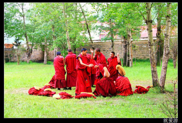 兰州汽车南站→长途班车:兰州8:30-12:30夏河→的士→酒店→步行拉卜楞寺外围→辩经→贡唐宝塔→拉卜楞寺内游览→晚餐→酒店