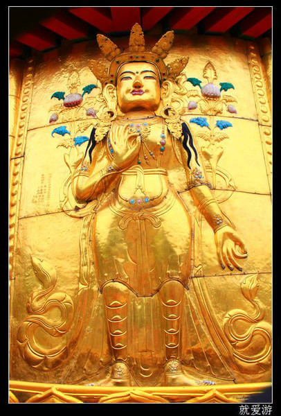 贡唐宝塔最上一层有8尊浮雕馏金菩萨像,这是其中之一。
