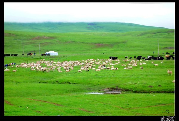 牧民各式各样的帐蓬把草原装点得更加绚丽。