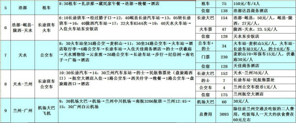 6:10长途班车→经过腊子口→12:40岷县长途汽车站→13:05转长途班车→16:40陇西汽车站→17:22火车K544次→19:40天水火车站→入住火车站快捷酒店
