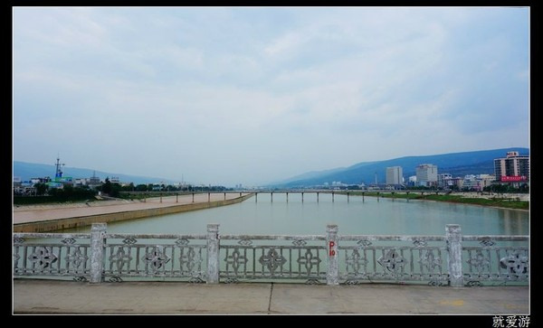 渭河流经天水的麦积区,这里的渭河也同黄河一样黄,不过聪明的天水人在河道中间修起一道坝墙,一边是渭河主河道,颜色是黄的,一边是蓄起的渭河水,颜色是清的,还在沿岸修了公园,成为城市一景。