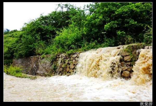 山上的雨水汇成小瀑布,漫过路旁的挡土墙冲上道路,小车过时真担心熄火。