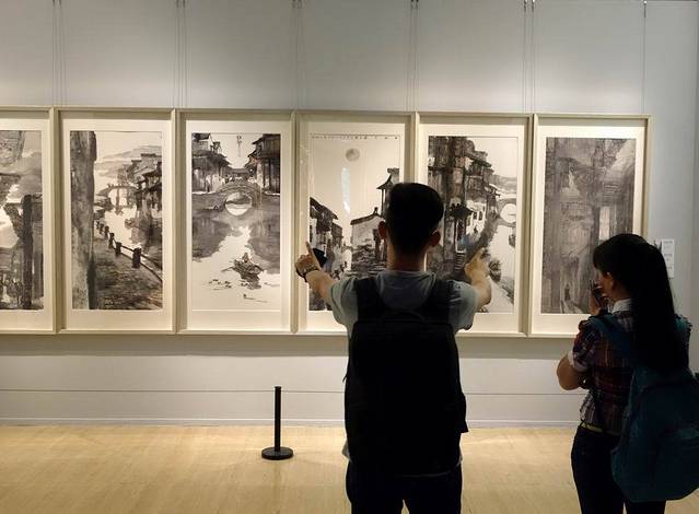 这次画展是邹明继2002年在中国美术馆首次个人画展十三年之后的又一次亮相,共展出代表性作品50幅,作品由综合绘画和水墨水乡两部分组成。