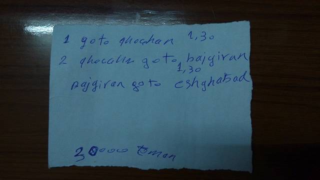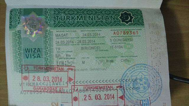 土库曼斯坦签证我们是在伊朗德黑兰的领事馆办理的。60美金5天的过境签,必须指定口岸和出入境时间,而且必须持下一国的有效签证,两个选择,哈萨克斯坦或者乌兹别克斯坦,办理周期是一周。可以在德黑兰办理,马什哈德领取(马什哈德是过境去土库曼斯坦的必经之路)