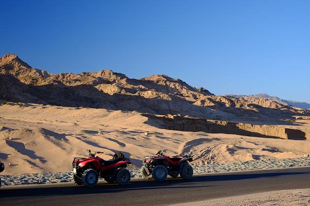 早上迎着日出,我们出发了,这样的路况只能吉普车通过,我们上路了才知道这150美金还是很值得的,因为两国边境是250公里长的无人区。