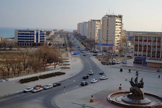 阿克套是哈萨克斯坦的里海度假城市,以前是苏联精英来度假的圣地,所以整个城市建设是完全苏式的。街上的气氛也和土库曼斯坦完全不同,开放,活跃。
